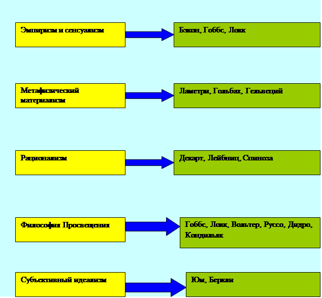 Локк, Дж. Беркли, Д. Юм – в Англии; Э. Кондильяк, К. Гельвеций, П. Гольбах, Д.